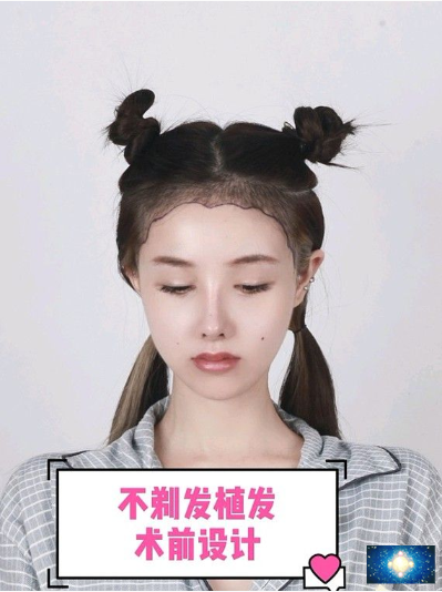 术前分析:小姐姐是名模特,长相甜美,五官精致,但是额角和鬓角发际线稀疏,导致额头又宽又高,很是突出,让三庭五眼比例失衡,平时造型总是离不开刘海。