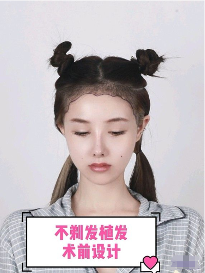 术前分析:小姐姐是名模特,长相甜美,五官精致,但是额角和鬓角发际线稀疏,导致额头又宽又高,很是突出,让三庭五眼比例失衡,平时造型总是离不开刘海。