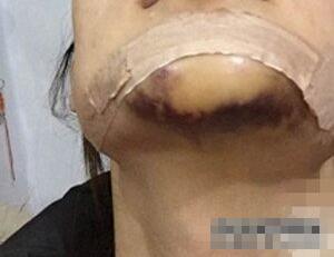 下巴的淤青有点吓人...远看像是男人的胡子似的。