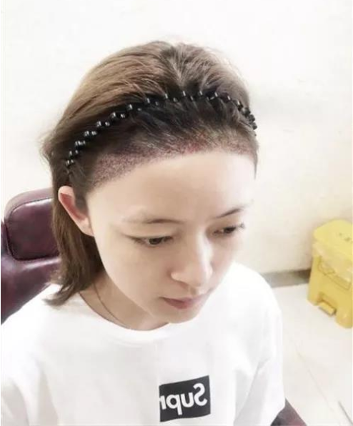 术后第10天,把发际线上面的血痂洗掉之后就成了这个样子,头发很短很短,不过总归发际线没有以前那么高了,显得脸也更小了一些。后脑勺用头发直接盖住,带上帽子就可以出门啦。