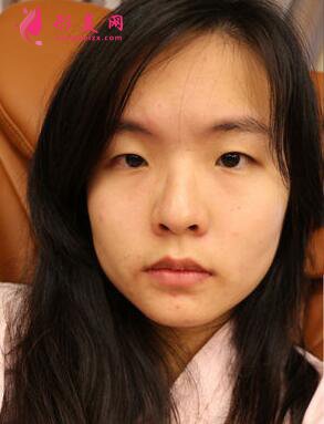 美啊美她的眼睛状况:小内翻,大眼睛和小眼睛,上睑松弛。原则上,建议保守地去除多余的皮肤,用全切的方法来打破原有的内双皱襞粘连。对于楠楠不愿意选择切口手术的,建议采用生物焊接双眼皮方法。埋线深度应该高,深度应该低。如有必要,应通过悬挂睑板来达到满意的效果。