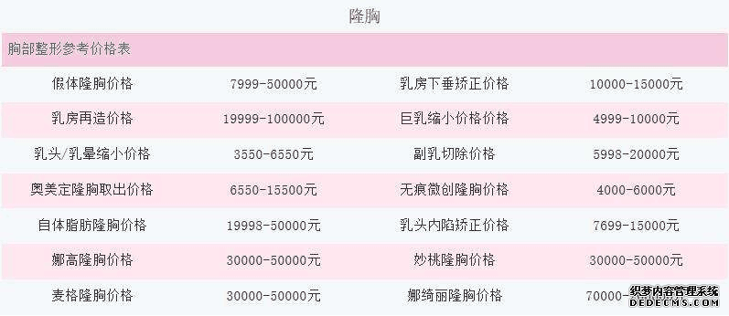 厦门时光华美医疗美容胸部整形多少钱?整形价格表如下: